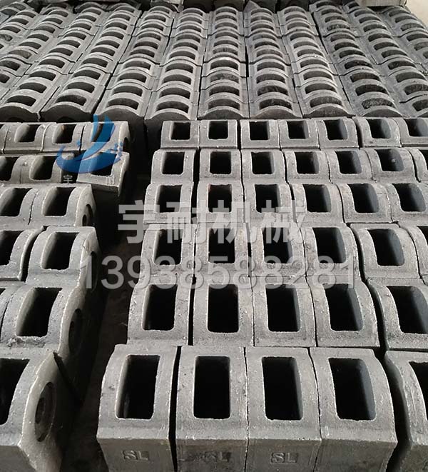 可逆錘式破碎機(jī)是冶金、建材、化工和水電等工業(yè)部門中細(xì)碎石灰石、煤或其他中等硬度以下脆性物料的主要設(shè)備之一,大特點(diǎn)就在于轉(zhuǎn)子可正反轉(zhuǎn),提高了錘頭的利用率,并且對(duì)水分較大的物料也能夠破碎,是集錘破和反擊破優(yōu)勢(shì)于一體,具有破碎比大,生產(chǎn)能力高,產(chǎn)品粒度均勻等特點(diǎn)。由于其不同于普通破碎機(jī)的設(shè)計(jì)理念,結(jié)構(gòu)上采用了大轉(zhuǎn)子、短銷軸、可逆式旋轉(zhuǎn)組合的錘頭,這樣使錘頭具有打擊力度大,操作維修方便,運(yùn)行成本低等優(yōu)點(diǎn)。我公司生產(chǎn)的雙合金耐磨錘頭頭部采用高鉻合金材料,錘柄采用韌性較好的低合金鋼材料,利用熱復(fù)合將兩種不同性能和功效的材料在液液狀態(tài)下使其熔融為一體,復(fù)合面積可達(dá)100%,解決了鑲合金和兩次復(fù)合澆鑄錘頭容易出現(xiàn)的斷裂、掉塊、掉頭等現(xiàn)象,提高了錘頭使用的安全性。